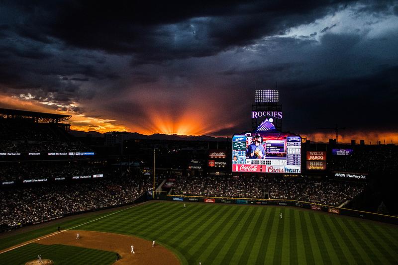 Sunset hit just right over the Rockies as I watched the Rockies play at Coors Field in Denver, Colorado.